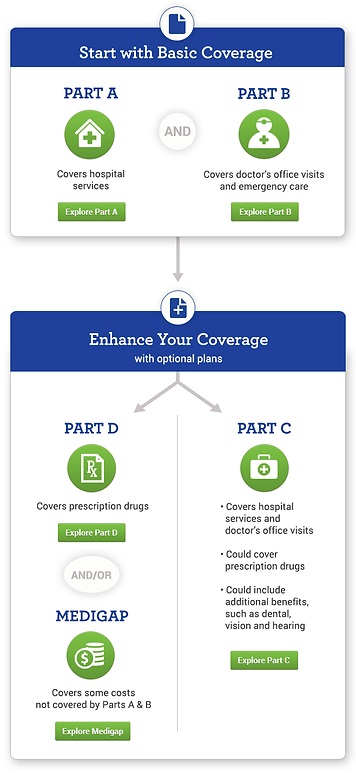 Medicare is a federal health insurance program created for people 65+ that was signed into law in 1965. Over the years, the coverage options have changed and expanded to provide recipients with more choices for their care. Medicare is made up of several primary components or parts. Let’s look at how they can be combined to work for you.